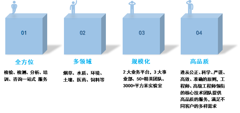 佳匯檢測是以環(huán)境、水質(zhì)、煙草品質(zhì)及其安全性、食品和健康安全檢測為主的全國性、綜合性、獨(dú)立性的第三方高端檢測服務(wù)機(jī)構(gòu)。實(shí)驗(yàn)室配備了各類別高端精密的監(jiān)測分析儀器設(shè)備,設(shè)備總值近五千萬元,現(xiàn)有員工五十余人。公司具有齊全完備的檢測資質(zhì),按照《檢測和校準(zhǔn)實(shí)驗(yàn)室能力認(rèn)可準(zhǔn)則》建立實(shí)驗(yàn)室質(zhì)量管理體系。公司始終關(guān)注國內(nèi)、國際市場變化,以滿足客戶需求為導(dǎo)向,嚴(yán)格遵守國家有關(guān)法律、法規(guī),嚴(yán)格按照強(qiáng)制性標(biāo)準(zhǔn)和合同規(guī)定的檢驗(yàn)標(biāo)準(zhǔn)、方法或客戶約定的方法進(jìn)行檢驗(yàn),對所出具的檢測報(bào)告負(fù)責(zé)。不斷探索開發(fā)新方法,以最高的技術(shù)手段,為客戶提供確實(shí)有效的解決方案和始終如一的服務(wù)。