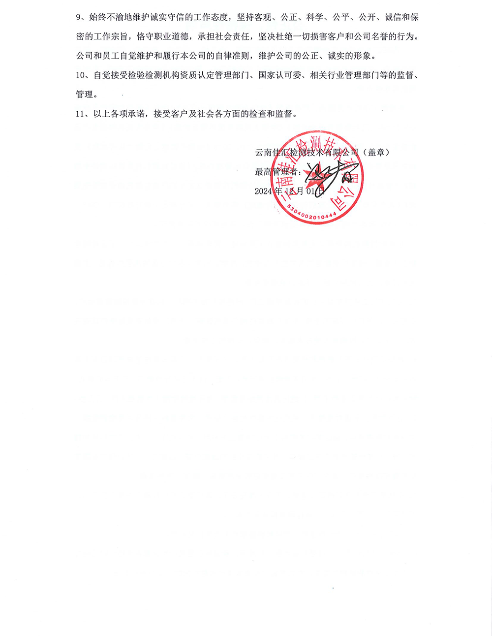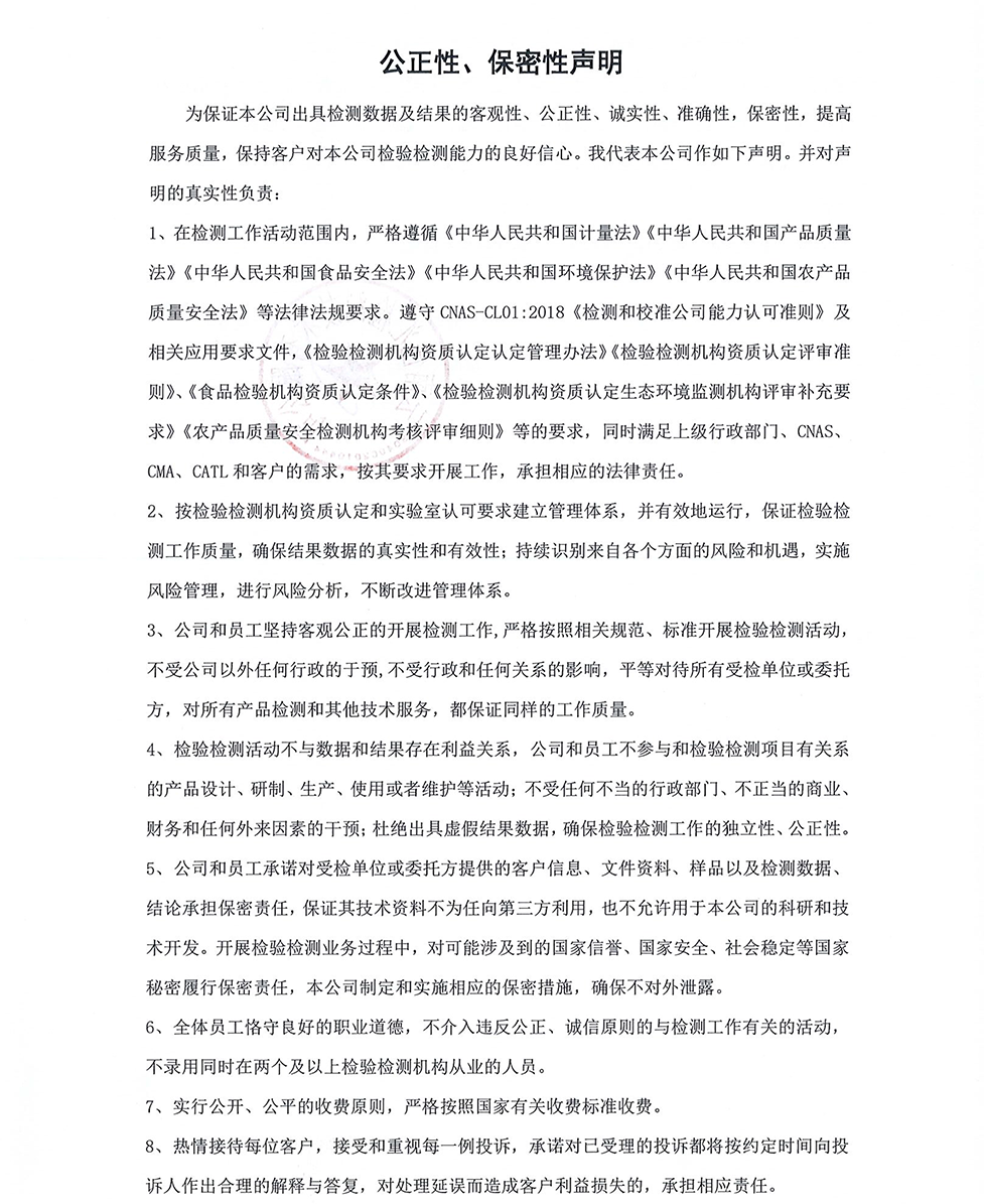 云南佳匯檢測(cè)技術(shù)有限公司公正性、保密性聲明